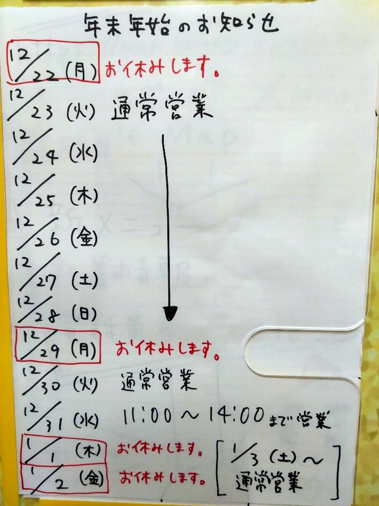 12/31水曜日(11:00〜14:00)